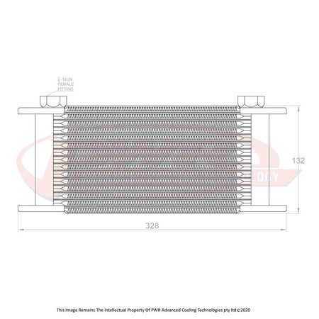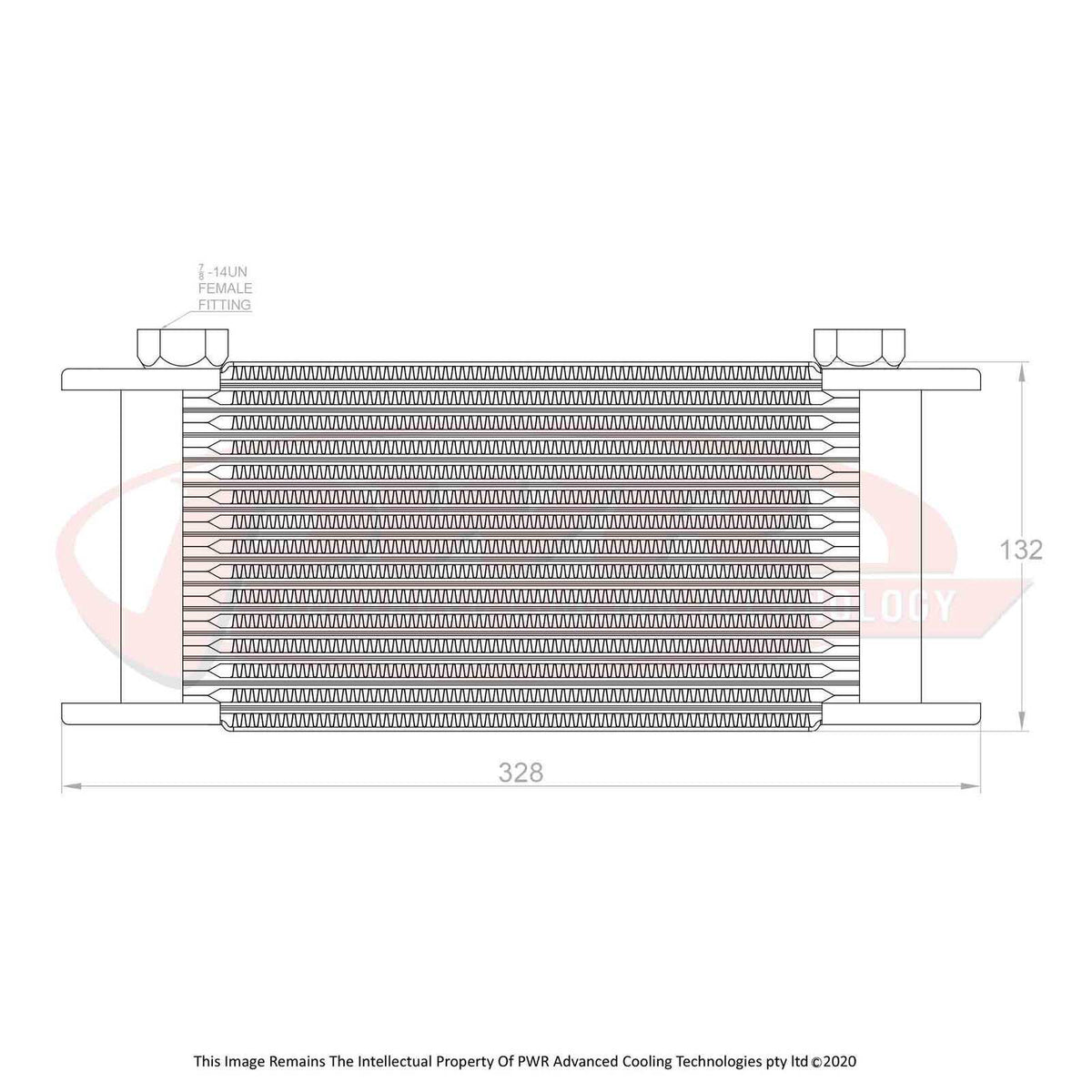 Modern engines run higher oil temperatures and rely on engine oil to assist the water system in cooling the engine. PWR’s patented plate and fin engine oil coolers are made from 100% aluminium construction which allows the cooler to be made strong, lightweight and compact while offering high heat transfer and powder coated for corrosion resistance. The plate design turbulates the oil flow and in conjunction with the unique louvered fin design provides unequalled heat rejection while offering very low-pressure drop. Manufactured with a 37mm core, these coolers are perfect for engine oil cooling, heavy-duty automatic transmission cooling, power steering and differential cooling for race and road applications. All coolers come standard with Dash -10 AN & Dash -12 AN male adapters with Dash -6 AN & Dash -8 AN being alternative options. Custom versions can be special ordered with thermo fan mounts with or without thermo switch bosses.